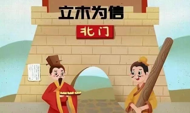 商鞅立木为信是战国时期发生在秦国国都的一个事件,也是历史上著名的诚实守信的故事。春秋战国时,商鞅在秦孝公的支持下主持变法。当时处于战争频繁、人心惶惶之际,为了推进改革,商鞅下令在都城南门外立一根三丈长的木头,并当众许下诺言:谁能把这根木头搬到北门,赏金十两。但所有民众都不信,直到将赏金提升至五十金时,才有一壮士将木头搬到了北门,商鞅如约赏给了他五十金。商鞅这一举动,取得了民众对商鞅的信任,并在百姓心中树立起了威信,而商鞅接下来的变法就很快在秦国推广开了。这个故事也称商鞅立信。